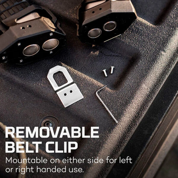 What’s included: NEBO Luxtreme SL75 flashlight, rechargeable battery, USB-C cable, 12V car charge cord, belt clip and wrist lanyard