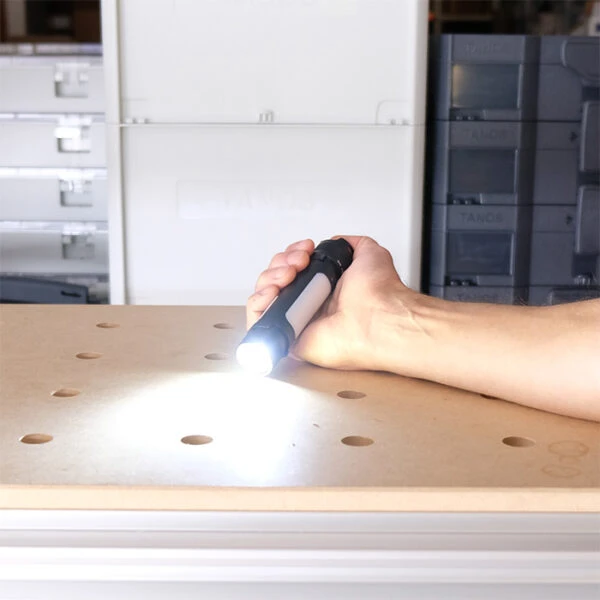 • flashlight (spot) and task light (flood) lighting modes