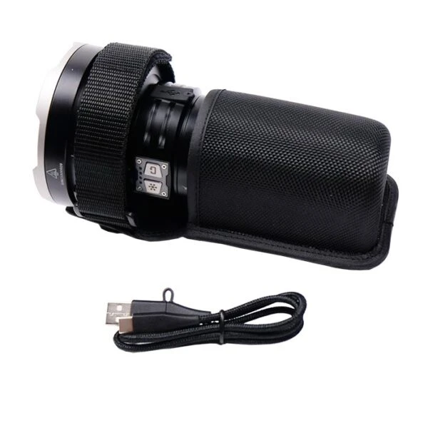 What’s included: Fenix LR50R flashlight, rechargeable battery, USB-C cable, nylon holster, shoulder strap, wrist lanyard (charging plug adapters available separately – see accessories below)