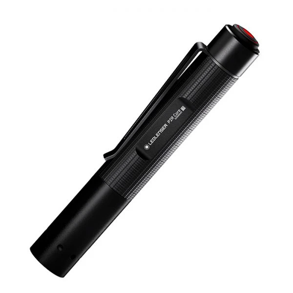 What’s included: LEDLenser P2R Core pen light, rechargeable battery, pocket clip, USB charging cable (wall plug charging adapter available separately – see accessories below)