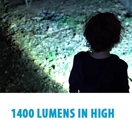 ☼ High- 1,400 lumens, 2.5 hour runtime, 260m beam range