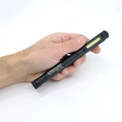 What’s included: Streamlight Stylus Pro COB rechargeable flashlight with pocket clip and USB charging cord (plug adapters available separately); NOTE – charge before using to disable “Try Me Mode”